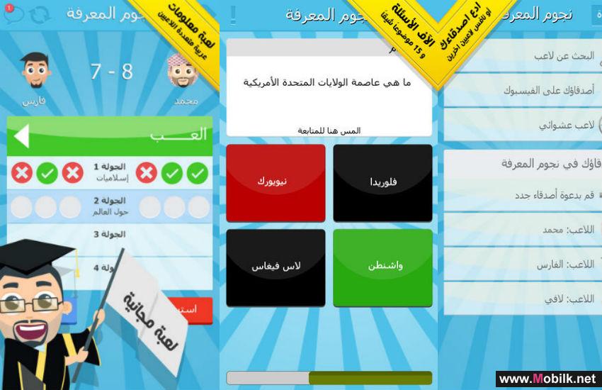 ولعبه “نجوم المعرفه” هي عباره عن مسابقه معلومات اجتماعيه متوفره مجانًا علي الهواتف الذكية والاجهزه اللوحيه التي تعمل بنظامي “اندرويد” و “اي او اس”.