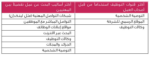 يعتمد (70%) من أصحاب العمل على التوصية الشخصية للتعريف بوجود فرص عمل، على الرغم من التوجهات الكبيرة نحو التوظيف عبر وسائل التواصل الاجتماعي. أجمع أصحاب العمل في الإمارات ممن شاركوا في الدراسة على صعوبة العثور على مرشحين يحملون المهارات والمؤهلات المطلوبة. 82% من المهنيين والباحثين عن عمل يعتقدون بأنهم يعملون في اختصاص لا يناسب مهاراتهم ومؤهلاتهم. يذكر أن شركة "لينكدإن" قد دعمت تواجدها في منطقة الشرق الأوسط وشمال أفريقيا في عام 2012 من خلال افتتاح مكتبها في دبي، مما ساهم في نمو عدد اعضائها في المنطقة ليصل اليوم لأكثر من 14 مليون عضو. كما قامت الشركة في فبراير الماضي من إطلاق موقعها باللغة العربية لتصبح بذلك اللغة الرابعة والعشرين للشبكة، والأولى التي تمتاز بخاصية الكتابة من اليمين إلى اليسار.