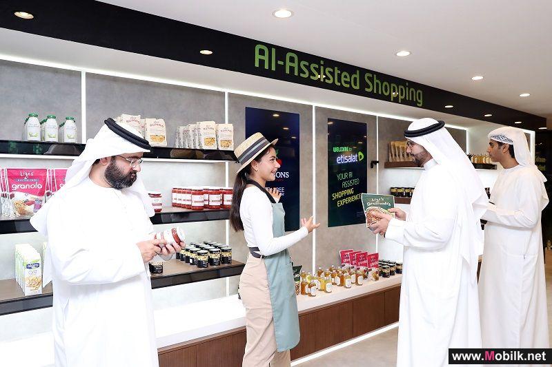 كما تفاعل زوار جناح "اتصالات" مع روبت متطور يستند على تقنية الذكاء الاصطناعي، وهو يقوم باختيار المشتريات ووضعها على كاونتر دفع الحساب، ومن ثم فرز كل مادة ووضع السعر الخاص بها. وفي الوقت نفسه هناك روبوت خاص بالدفع الذاتي يتعرف على المنتج بشكل فوري دون الحاجة لعملية المسح الضوئي للرمز الشريطي المعروف بـــ barcode. كما يتوفر أيضا الكثير من أنظمة التحليلات المرتكزة على إنترنت الأشياء والتي تعزز تجربة تسوق العملاء.