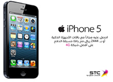 أعلنت شركة الاتصالات السعودية عن توفيرها جهاز iPhone5 فئة 16جيجابايت، مع شريحة مسبقة الدفع مجانية تحتوي على 50 دقيقة مكالمات، و50 رسالة نصية، و50 رسالة وسائط، وباقة