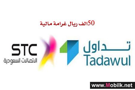 هيئة السوق المالية السعودية تغرم شركة الاتصالات السعودية غرامة مالية بقيمة 50 الف ريال , وذلك لمخالفتها الفقرة " أ " من المادة "46" من نظام السوق المالية , والفقرة " أ "